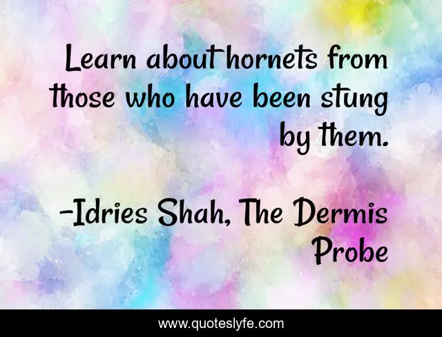 "Idries Shah, The Dermis Probe Quotes." Quoteslyfe.com, 2025. Sun. 07 Dec. 2025. <https://www.quoteslyfe.com/quote/Learn-about-hornets-from-those-who-have-117118>.