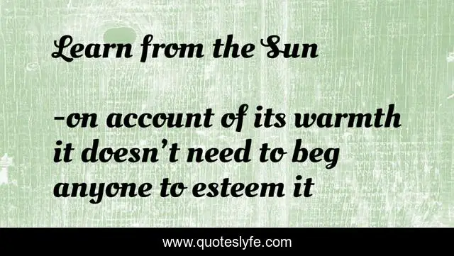 This page presents the quote "Learn from the Sun". Author of this quote is on account of its warmth it doesn’t need to beg anyone to esteem it. .