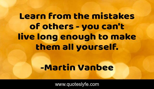 This page presents the quote "Learn from the mistakes of others - you can't live long enough to make them all yourself.". Author of this quote is Martin Vanbee. This quote is about failures, mistakes,.
