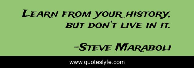 This page presents the quote "Learn from your history, but don’t live in it.". Author of this quote is Steve Maraboli. This quote is about confidence, success, positive, motivational, live, mistakes, optimistic, inspirational, learn,.