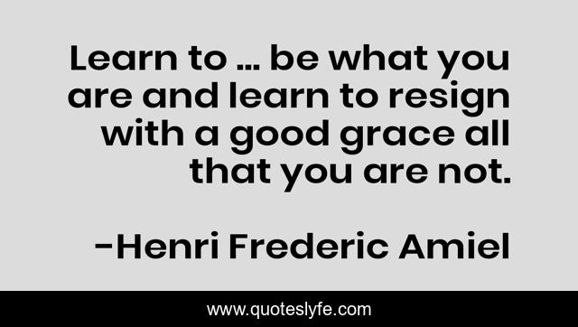 This page presents the quote "Learn to ... be what you are and learn to resign with a good grace all that you are not.". Author of this quote is Henri Frederic Amiel. This quote is about realistic, expectations,.