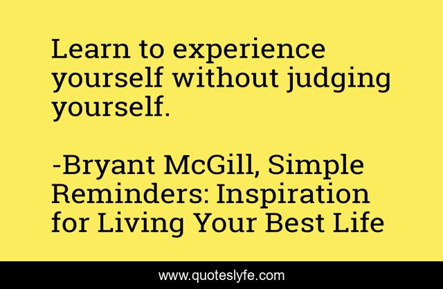 "Bryant McGill, Simple Reminders: Inspiration for Living Your Best Life Quotes." Quoteslyfe.com, 2025. Fri. 12 Dec. 2025. <https://www.quoteslyfe.com/quote/Learn-to-experience-yourself-without-judging-yourself-117266>.