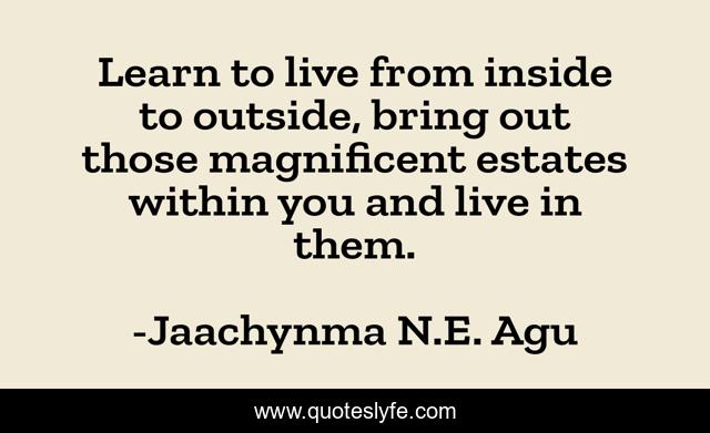 "Jaachynma N.E. Agu Quotes." Quoteslyfe.com, 2025. Sat. 06 Dec. 2025. <https://www.quoteslyfe.com/quote/Learn-to-live-from-inside-to-outside-88894>.