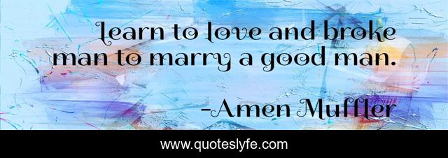 This page presents the quote "Learn to love and broke man to marry a good man.". Author of this quote is Amen Muffler. This quote is about learning, love, life-lessons, affection, successful-living,.