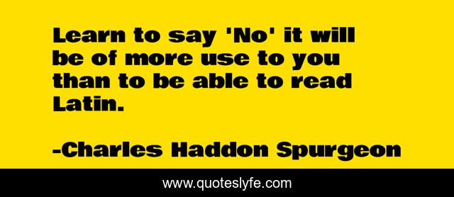 "Charles Haddon Spurgeon Quotes." Quoteslyfe.com, 2025. Sat. 06 Dec. 2025. <https://www.quoteslyfe.com/quote/Learn-to-say-No-it-will-be-261496>.