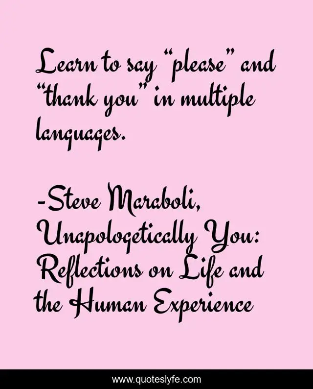 This page presents the quote "Learn to say “please” and “thank you” in multiple languages.". Author of this quote is Steve Maraboli, Unapologetically You: Reflections on Life and the Human Experience. This quote is about thank-you, please, language,.