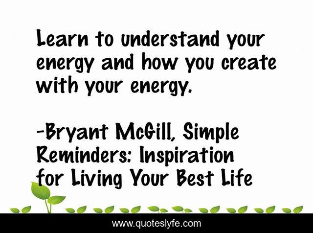 "Bryant McGill, Simple Reminders: Inspiration for Living Your Best Life Quotes." Quoteslyfe.com, 2025. Fri. 05 Dec. 2025. <https://www.quoteslyfe.com/quote/Learn-to-understand-your-energy-and-how-117275>.