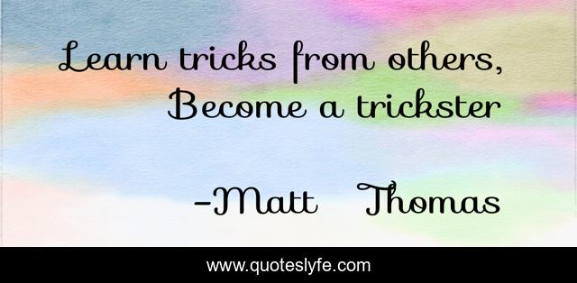 "Matt Thomas Quotes." Quoteslyfe.com, 2025. Sat. 06 Dec. 2025. <https://www.quoteslyfe.com/quote/Learn-tricks-from-others-Become-a-trickster-225459>.