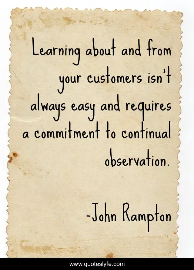 This page presents the quote "Learning about and from your customers isn't always easy and requires a commitment to continual observation.". Author of this quote is John Rampton. This quote is about commitment, easy,.