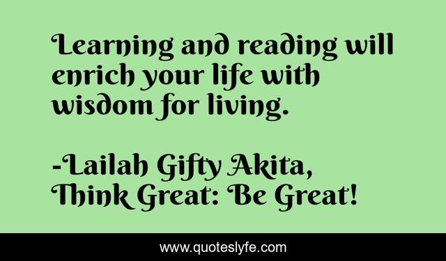 "Lailah Gifty Akita, Think Great: Be Great! Quotes." Quoteslyfe.com, 2025. Fri. 05 Dec. 2025. <https://www.quoteslyfe.com/quote/Learning-and-reading-will-enrich-your-life-98908>.