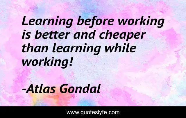 "Atlas Gondal Quotes." Quoteslyfe.com, 2025. Fri. 05 Dec. 2025. <https://www.quoteslyfe.com/quote/Learning-before-working-is-better-and-cheaper-36392>.