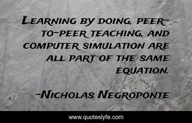 This page presents the quote "Learning by doing, peer-to-peer teaching, and computer simulation are all part of the same equation.". Author of this quote is Nicholas Negroponte. This quote is about computer, same,.