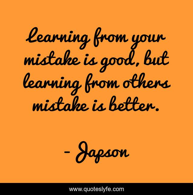 This page presents the quote "Learning from your mistake is good, but learning from others mistake is better.". Author of this quote is Japson. This quote is about enthusiasm, mistakes, inspirational,.