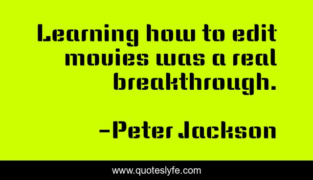 This page presents the quote "Learning how to edit movies was a real breakthrough.". Author of this quote is Peter Jackson. This quote is about real, movies, breakthrough,.