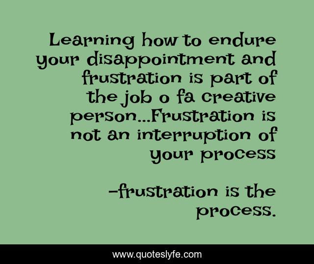 Learning how to endure your disappointment and frustration is part of the job o fa creative person...Frustration is not an interruption of your process