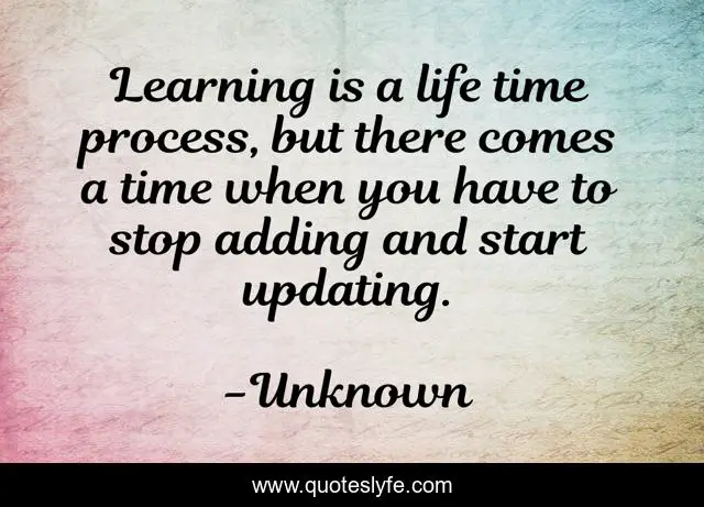This page presents the quote "Learning is a life time process, but there comes a time when you have to stop adding and start updating.". Author of this quote is Unknown. .