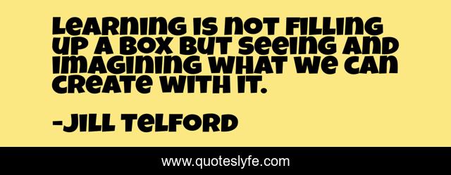 This page presents the quote "Learning is not filling up a box but seeing and imagining what we can create with it.". Author of this quote is Jill Telford. This quote is about education, learning, life-long-learning, public-schools,.