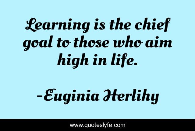 This page presents the quote "Learning is the chief goal to those who aim high in life.". Author of this quote is Euginia Herlihy. .