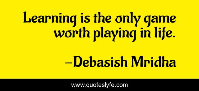This page presents the quote "Learning is the only game worth playing in life.". Author of this quote is Debasish Mridha. This quote is about life, learning, philosophy, debasish-mridha, quotes, debasish-mridha-md, inspirational, enthusiasm, education,.