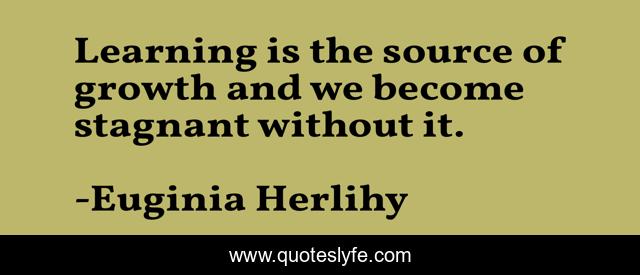 This page presents the quote "Learning is the source of growth and we become stagnant without it.". Author of this quote is Euginia Herlihy. .