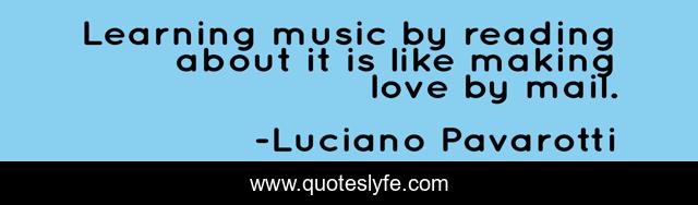 This page presents the quote "Learning music by reading about it is like making love by mail.". Author of this quote is Luciano Pavarotti. .