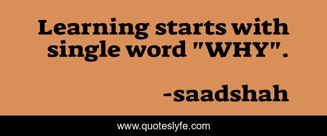 This page presents the quote "Learning starts with single word "WHY".". Author of this quote is saadshah. This quote is about inspiring, learning, positive, motivational, question, motivation, failure, single, optimistic,.