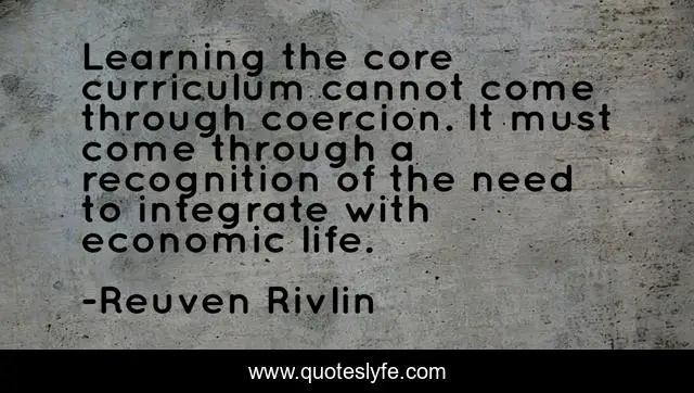 This page presents the quote "Learning the core curriculum cannot come through coercion. It must come through a recognition of the need to integrate with economic life.". Author of this quote is Reuven Rivlin. This quote is about life, economic, through,.