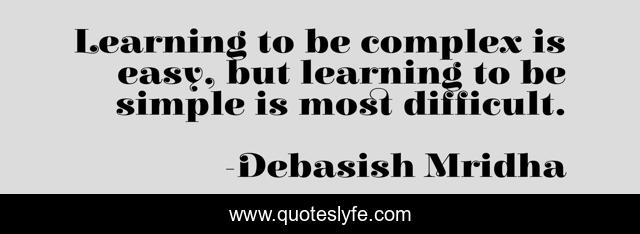 This page presents the quote "Learning to be complex is easy, but learning to be simple is most difficult.". Author of this quote is Debasish Mridha. This quote is about learning-to-be-simple, inspirational, philosophy, debasish-mridha, quotes, learning, enthusiasm, be-complex, debasish-mridha-m-d,.
