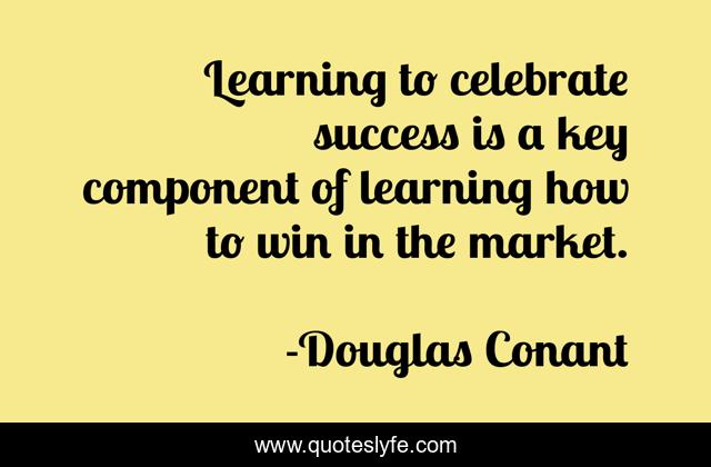 This page presents the quote "Learning to celebrate success is a key component of learning how to win in the market.". Author of this quote is Douglas Conant. This quote is about win, success, celebrate,.