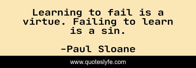 This page presents the quote "Learning to fail is a virtue. Failing to learn is a sin.". Author of this quote is Paul Sloane. This quote is about failure, innovation, virtue, learning, sin,.