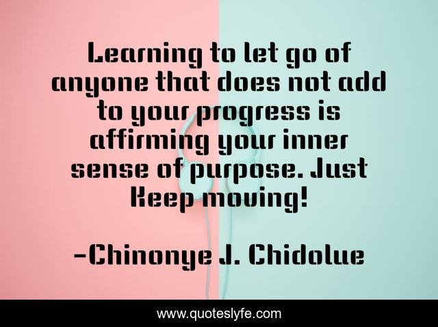 Learning to let go of anyone that does not add to your progress is affirming your inner sense of purpose. Just Keep moving!