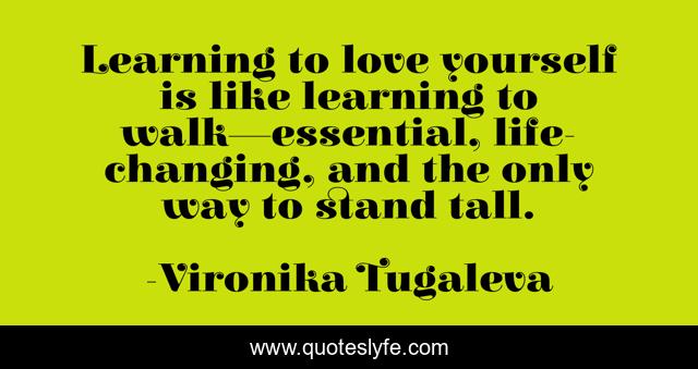 This page presents the quote "Learning to love yourself is like learning to walk—essential, life-changing, and the only way to stand tall.". Author of this quote is Vironika Tugaleva. This quote is about self-love, self-awareness, wisdom, self-confidence, love-yourself, self-care, self-esteem,.