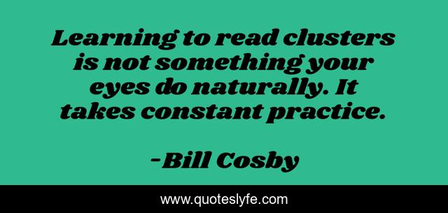 This page presents the quote "Learning to read clusters is not something your eyes do naturally. It takes constant practice.". Author of this quote is Bill Cosby. This quote is about eyes, practice, something,.