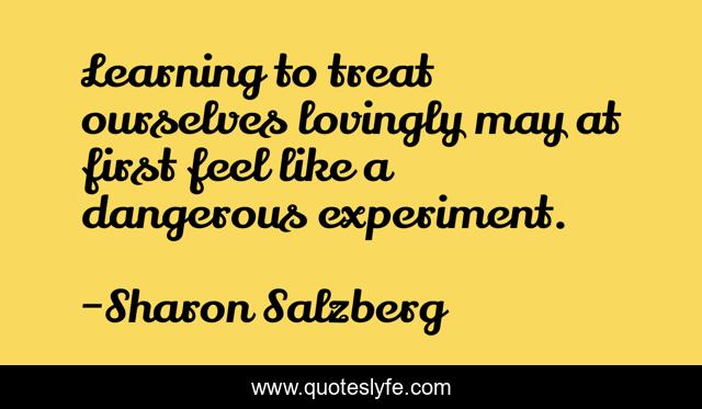This page presents the quote "Learning to treat ourselves lovingly may at first feel like a dangerous experiment.". Author of this quote is Sharon Salzberg. This quote is about love, mindfulness, meditation, real-love, self-care, affection,.
