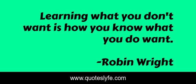 "Robin Wright Quotes." Quoteslyfe.com, 2025. Sat. 06 Dec. 2025. <https://www.quoteslyfe.com/quote/Learning-what-you-don-t-want-is-300463>.
