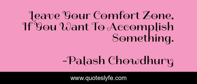 This page presents the quote "Leave Your Comfort Zone, If You Want To Accomplish Something.". Author of this quote is Palash Chowdhury. This quote is about confidence, leadership, creativity, life, success,.