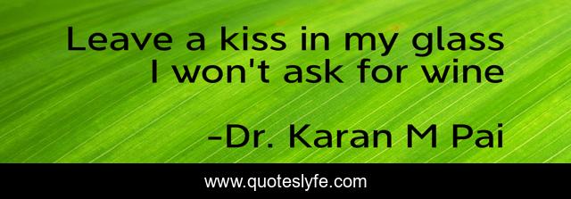 This page presents the quote "Leave a kiss in my glass I won't ask for wine". Author of this quote is Dr. Karan M Pai. .