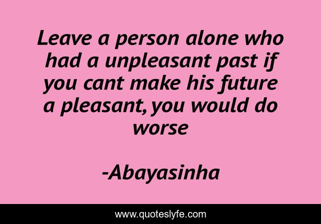 This page presents the quote "Leave a person alone who had a unpleasant past if you cant make his future a pleasant, you would do worse". Author of this quote is Abayasinha. This quote is about love, people, sad, past, unpleasant, affection,.