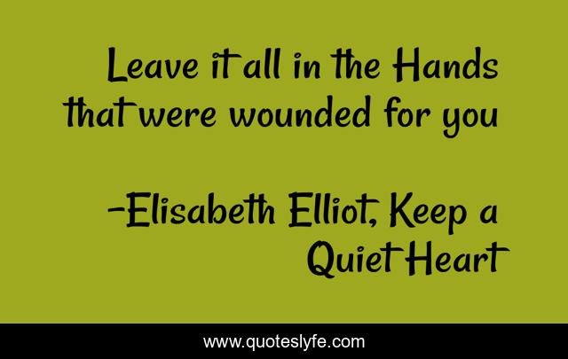 This page presents the quote "Leave it all in the Hands that were wounded for you". Author of this quote is Elisabeth Elliot, Keep a Quiet Heart. .