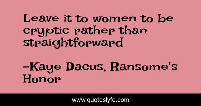 "Kaye Dacus, Ransome's Honor Quotes." Quoteslyfe.com, 2025. Sun. 07 Dec. 2025. <https://www.quoteslyfe.com/quote/Leave-it-to-women-to-be-cryptic-58783>.