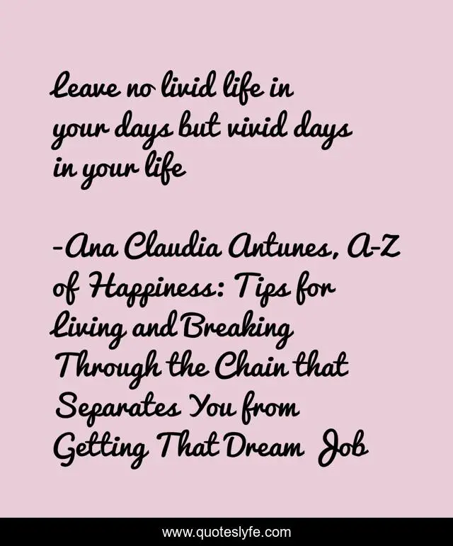 "Ana Claudia Antunes, A-Z of Happiness: Tips for Living and Breaking Through the Chain that Separates You from Getting That Dream Job Quotes." Quoteslyfe.com, 2025. Sun. 07 Dec. 2025. <https://www.quoteslyfe.com/quote/Leave-no-livid-life-in-your-days-97071>.