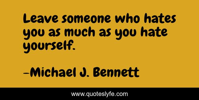 This page presents the quote "Leave someone who hates you as much as you hate yourself.". Author of this quote is Michael J. Bennett. This quote is about relationship, self-esteem,.