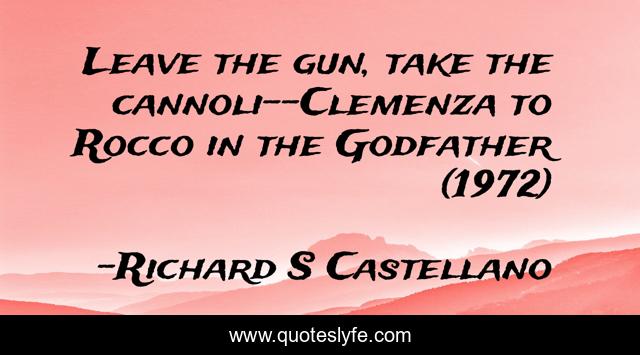 This page presents the quote "Leave the gun, take the cannoli--Clemenza to Rocco in the Godfather (1972)". Author of this quote is Richard S Castellano. .