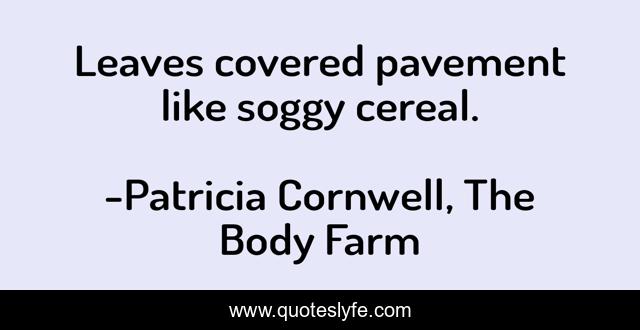 "Patricia Cornwell, The Body Farm Quotes." Quoteslyfe.com, 2025. Sat. 06 Dec. 2025. <https://www.quoteslyfe.com/quote/Leaves-covered-pavement-like-soggy-cereal-257179>.