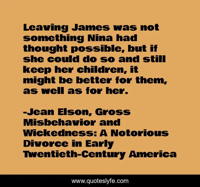 "Jean Elson, Gross Misbehavior and Wickedness: A Notorious Divorce in Early Twentieth-Century America Quotes." Quoteslyfe.com, 2025. Mon. 08 Dec. 2025. <https://www.quoteslyfe.com/quote/Leaving-James-was-not-something-Nina-had-76909>.