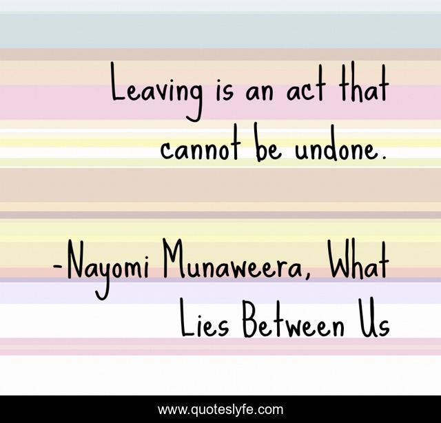 "Nayomi Munaweera, What Lies Between Us Quotes." Quoteslyfe.com, 2025. Fri. 05 Dec. 2025. <https://www.quoteslyfe.com/quote/Leaving-is-an-act-that-cannot-be-137184>.