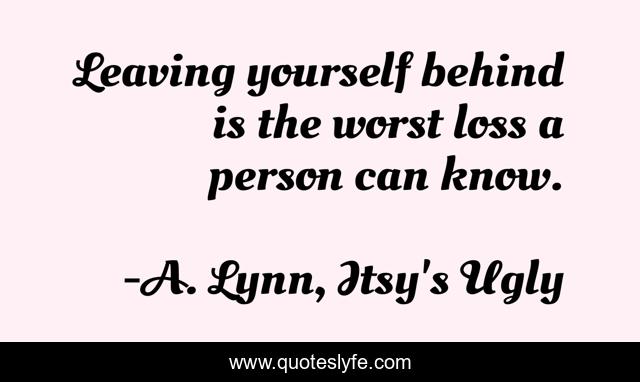 This page presents the quote "Leaving yourself behind is the worst loss a person can know.". Author of this quote is A. Lynn, Itsy's Ugly. This quote is about loss, goodbye, self-loss,.