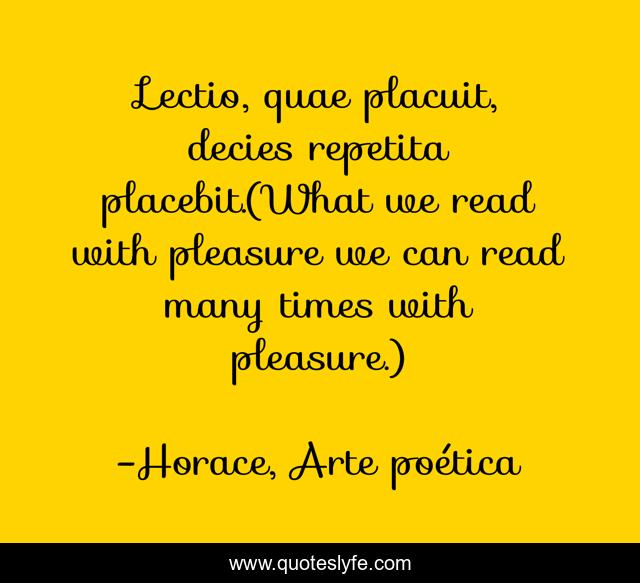 This page presents the quote "Lectio, quae placuit, decies repetita placebit.(What we read with pleasure we can read many times with pleasure.)". Author of this quote is Horace, Arte poética. This quote is about pleasure, books, reading,.