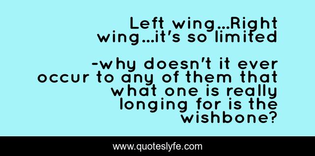 This page presents the quote "Left wing...Right wing...it's so limited". Author of this quote is why doesn't it ever occur to any of them that what one is really longing for is the wishbone?. This quote is about jan struther, mrs. miniver,.