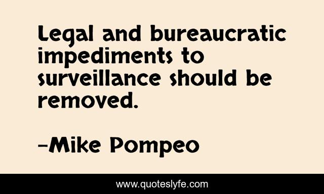 This page presents the quote "Legal and bureaucratic impediments to surveillance should be removed.". Author of this quote is Mike Pompeo. .